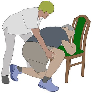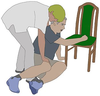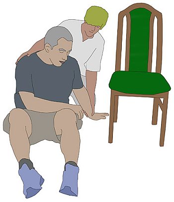 Bewohner soll das Gewicht des Unterkörpers auf ein Knie verlagern.