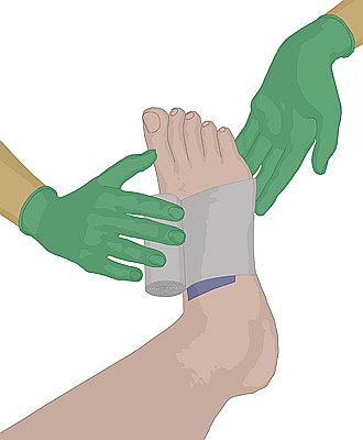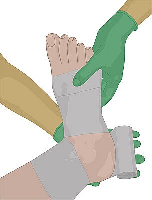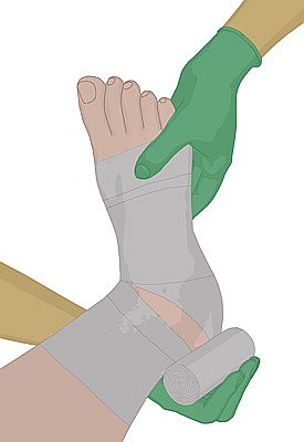 ein wenig Übung ist ein Bindenverband am Fuß eine Aufgabe, die sich in