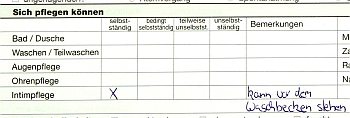 bei jeder Überarbeitung der Pflegeplanung ergänzt werden soll. Selbst