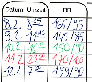 Blutdruckwerte häufig nicht nur im Vitalwerteblatt, sondern auch im