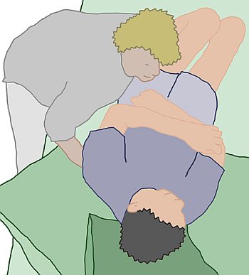 Gesäß auf der weniger betroffenen Seite. Die zweite Hand liegt am