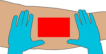 farbiges Desinfektionsmittel genutzt, um die gewünschte Stelle zu