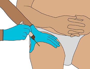 Bewohner eine Hose an, läge die Einstichstelle zwischen der vorderen