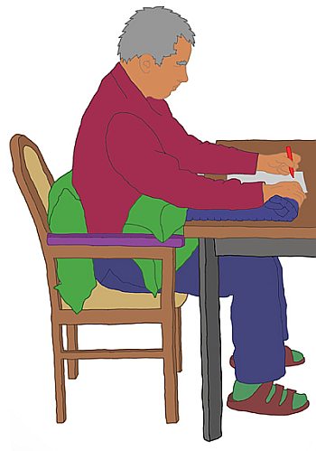 Bewohner sitzt gerade.