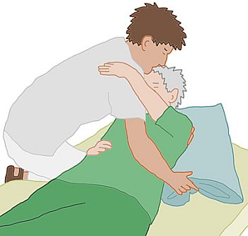 weniger betroffenen Seite zu wenden und gleichzeitig vom Bett