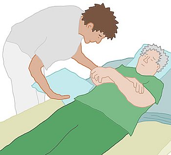 betroffenen Arm auf der Schulter der Pflegekraft abzulegen.