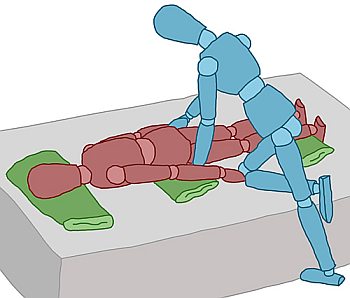 Der Bewohner wird nun auf den Bauch gedreht.