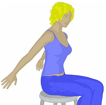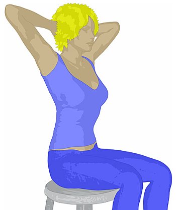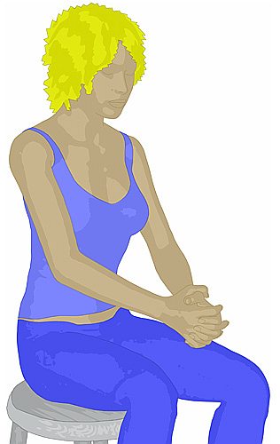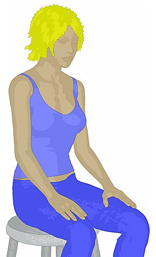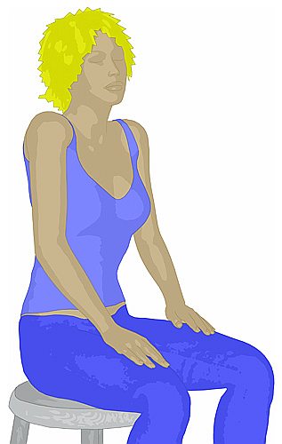 nach unten fallen. Die Hände lagern dabei auf den Oberschenkeln. Die