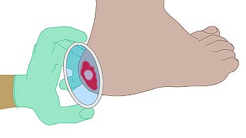 verdächtige Hautzone auf und beobachtet die Reaktion der Haut. Bleibt