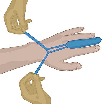 führt ihn über den Finger. Die Wundauflage muss dabei in der