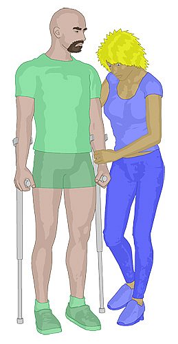 kranke Bein zu entlasten.