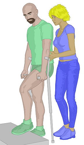 Das gesunde Bein wird auf die gleiche Stufe