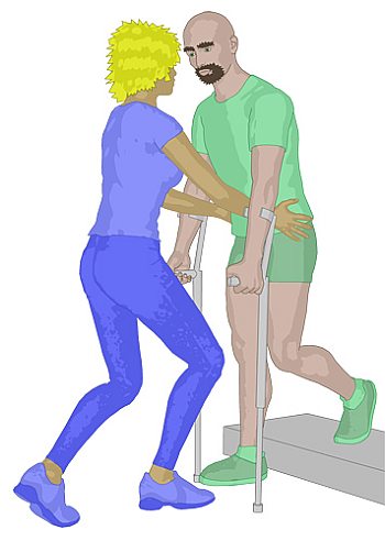 wird vorgesetzt. Das gesunde Bein wird vorbewegt und auf Höhe der