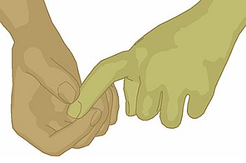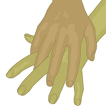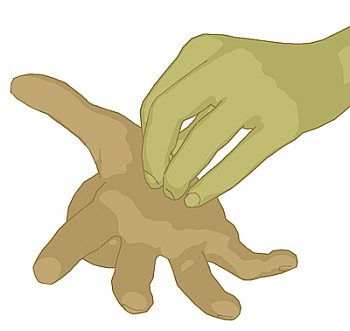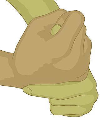 der anderen Hand. Der Daumen wird nun gedreht und reibt sich in der