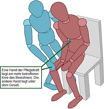 hat, wechselt die Pflegekraft die Griffpositionen. Eine Hand