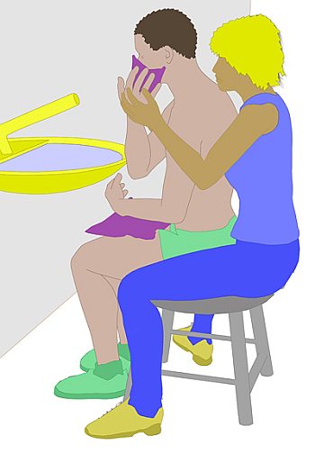reinigen, die er mit dem weniger betroffenen Arm erreichen kann.