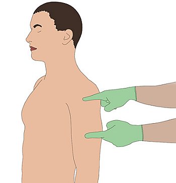 des Deltamuskels. Der Arm darf nicht nach außen rotiert sein.