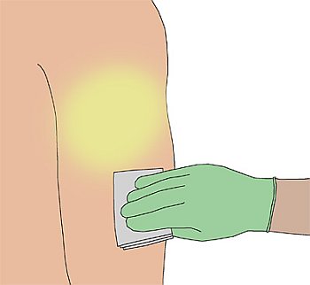 Injektionsbereiches mit einem Tupfer aufgenommen. Ggf. wird ein