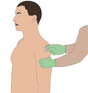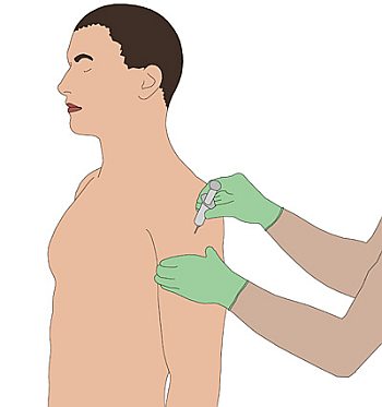 Injektion in den Oberarm erfolgt in den Deltamuskel. Diese