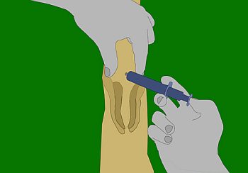 Spritze abgesaugt und verworfen. (Es ist