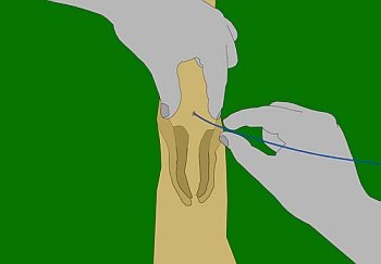 Katheterspitze, stülpt den Handschuh darüber