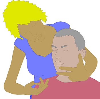 Arm von hinten um den Kopf des Klienten herum.