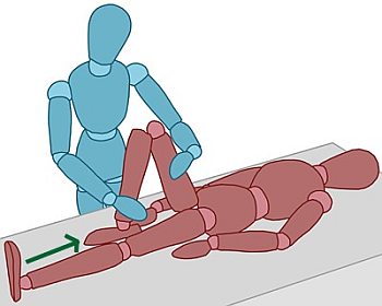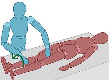 Abspreizung (Abduktion) mit 45°. Danach bewegt die Pflegekraft das