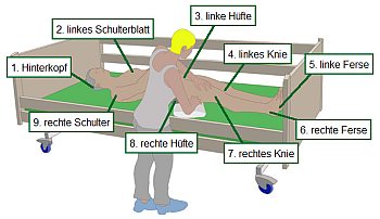 Lagerungshilfsmittel wird im Uhrzeigersinn unter folgende Körperbereiche