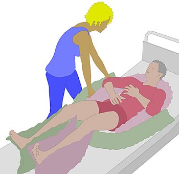 Bewohner wird nun zurück in die Rückenlage gebracht. Die Deckenrolle