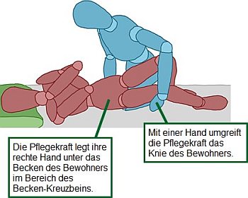 Durchgreifen unter dem Becken des Bewohners gelingt leichter, wenn die