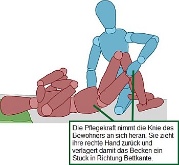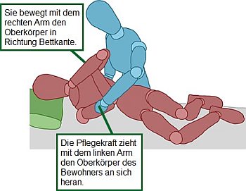 heran. Sie rollt den Bewohner also zurück in die Rückenlage und auf