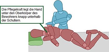 Pflegekraft mit dem rechten Arm den Oberkörper in Richtung