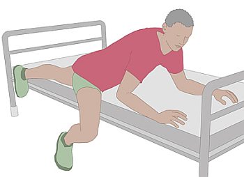 ein Bein aus dem Bett bewegen und es seitlich neben dem Bett