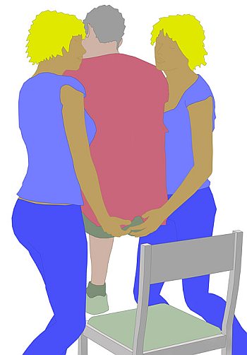 "Transfer von der Bettkante auf einen Stuhl mit zwei