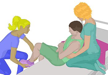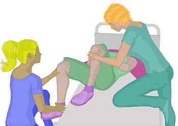 abgestellt ist, kann die zweite Pflegekraft das Knie des weniger