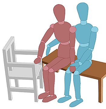 Sitzfläche des Stuhles zeigt. Er verlagert dafür sein Gewicht im