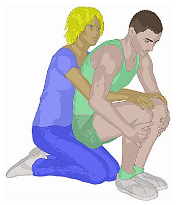 umfassen. Er soll nun die Beine so weit anziehen, dass die Pflegekraft