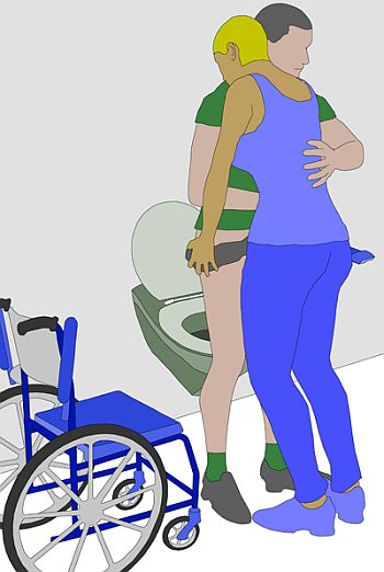 Transfer vom Rollstuhl auf die Toilette bei Hemiplegie"