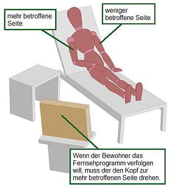 wird auf der mehr betroffenen Seite des Bewohners aufgestellt. Auf