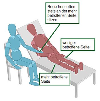Besucher, sich an die mehr betroffene Seite des Bewohners zu setzen.