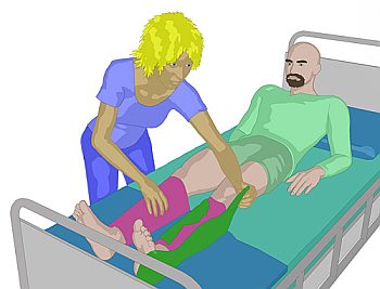 Die Wadenwickel werden innerhalb einer Stunde 3 bis 5 mal wiederholt.