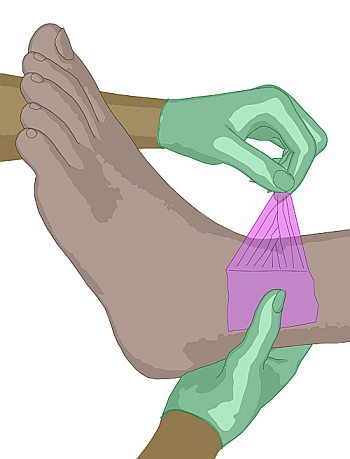 dass sie den Wundbereich um rund zwei bis drei Zentimeter überlappt.
