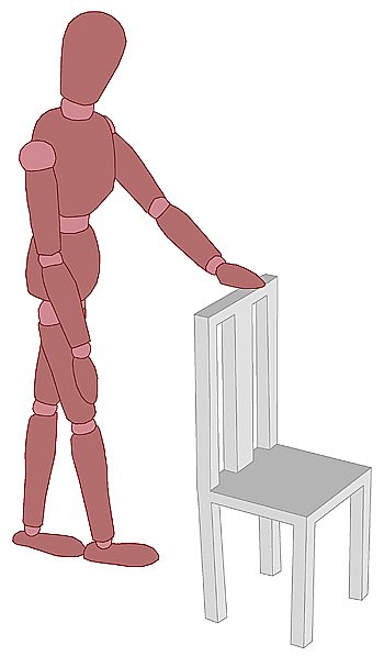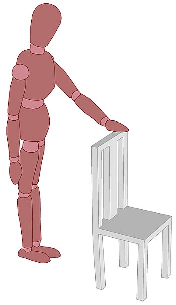 Füße ganz dicht voreinander stellen und die Stuhllehne loslassen: